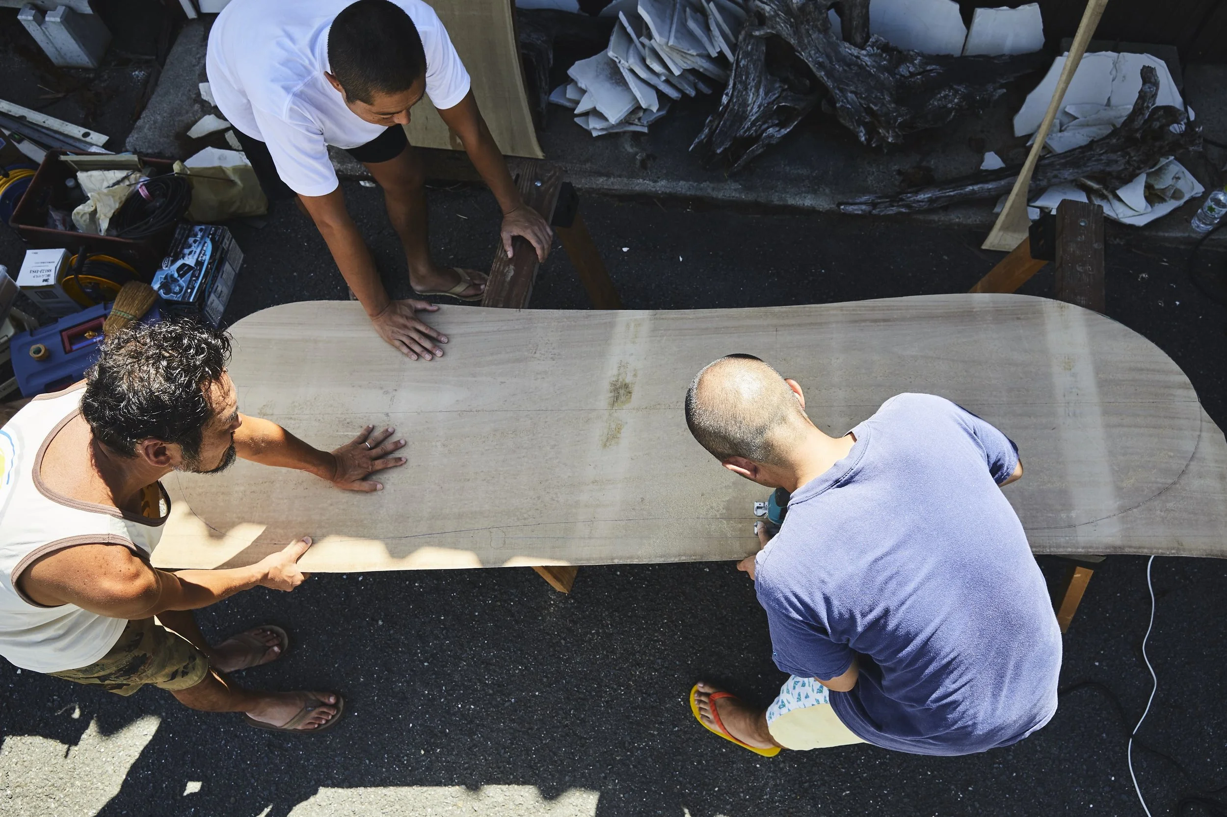 地球・自然に配慮し、環境負荷の無い古代ハワイアンが乗っていた天然木のロングボード「アライア」を現代に蘇らせたTom氏。この思考、姿勢に共感し、世界中からWegener Surf Stayへの参加者が集まります。