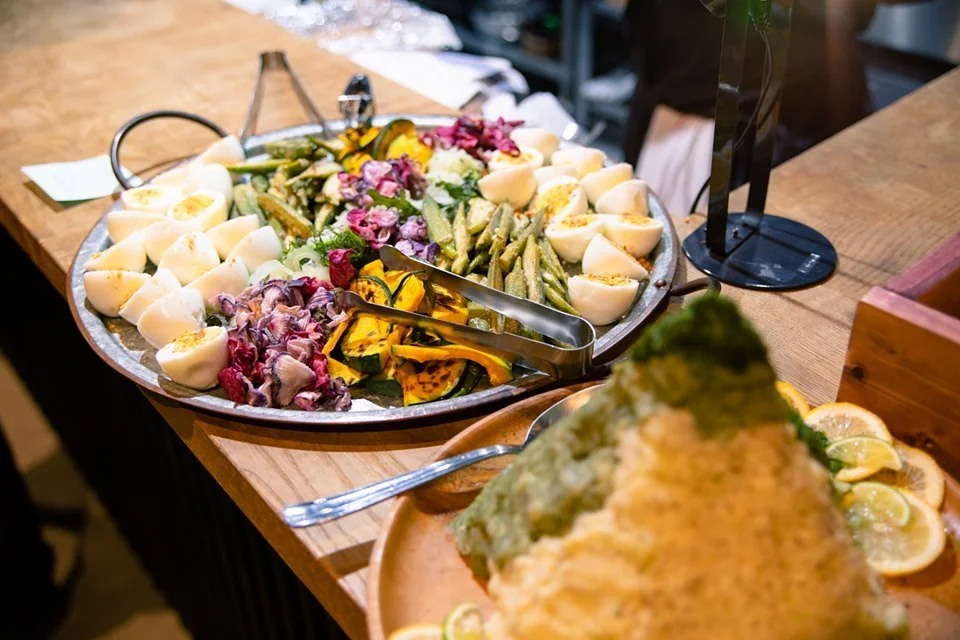 お酒は「一杯のビールで、地球を救う」がコンセプトのアウトドアブランド・パタゴニアのLongRoot。名前の「長い根」の意味になっいる、 何年も成長できる多年生小麦「カーンザ」も使用していて、食を通じて環境改善させていこうという考えに、すごく共感!ハートランドも準備していて、こちらも容器を回収してゴミを出さないようにしました。