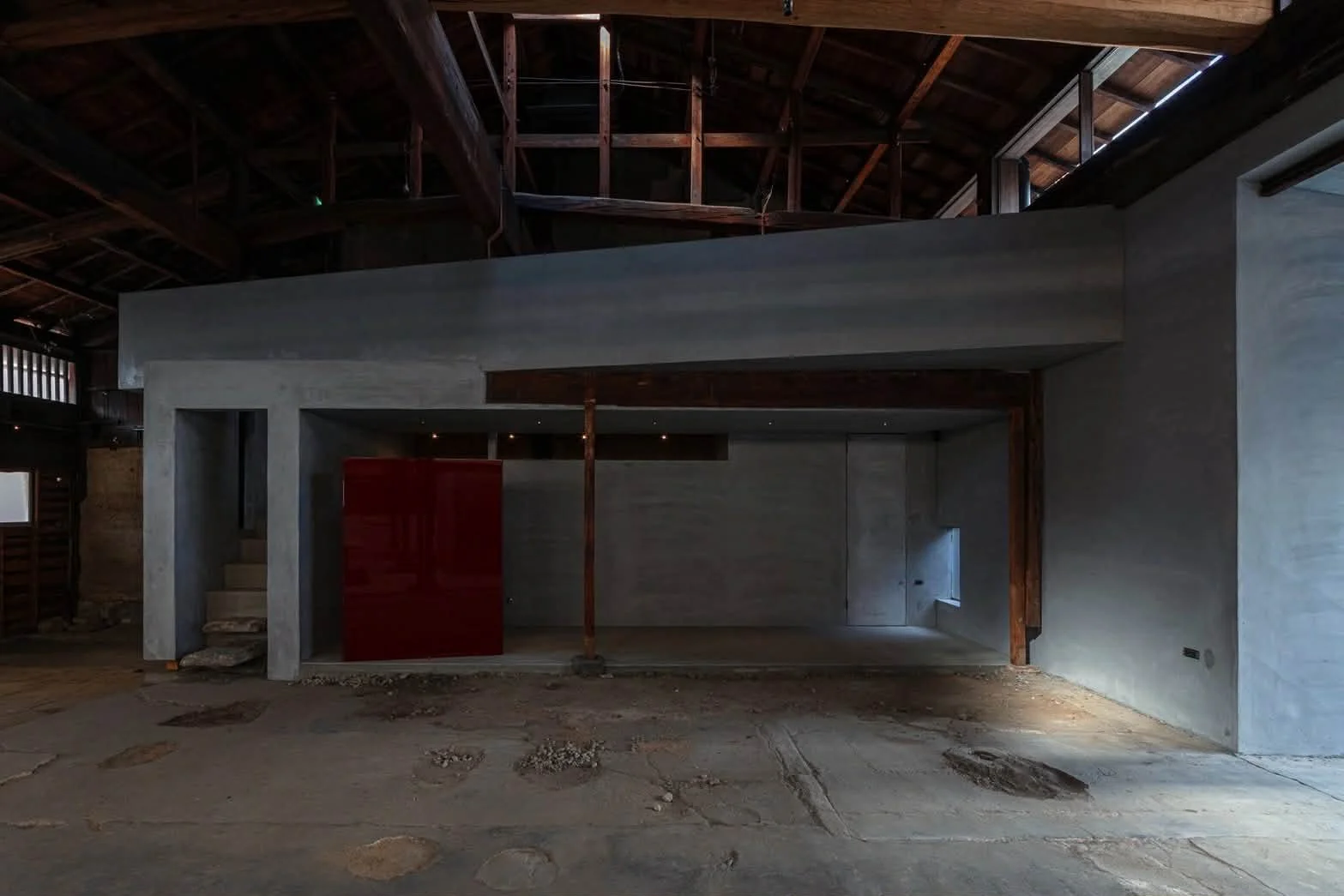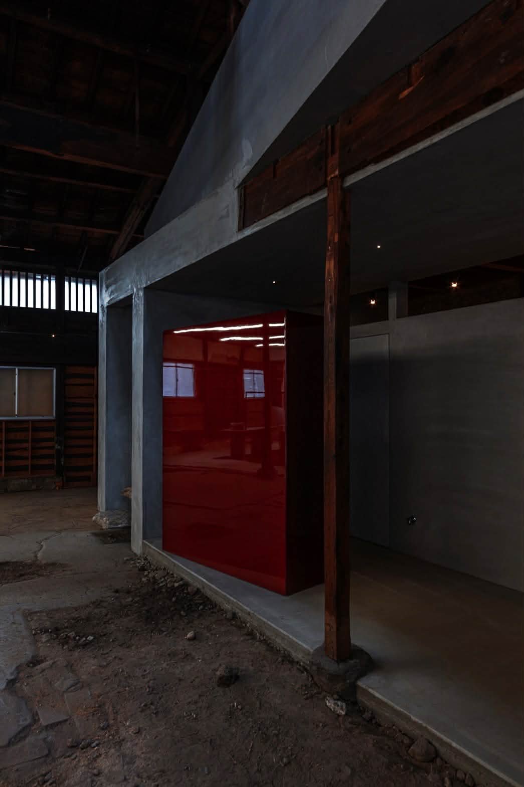 The new structure, composed of reinforced concrete and mortar, is inserted like an anomaly into the existing wooden trusses, earthen walls, and lattice windows, creating a sense of tension. Furthermore, a permanent installation has been set up, themed on re-examining the meaning of the act of choosing "what to wear" in everyday life.