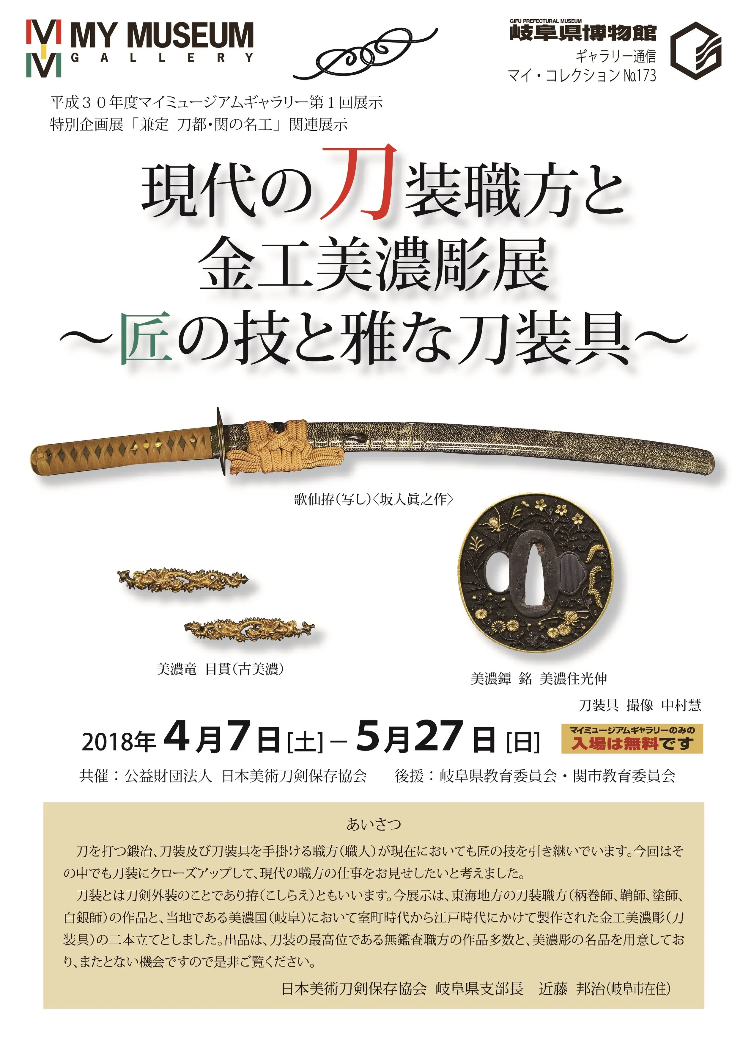 現代の刀装職方と金工美濃彫展 伝統を受け継ぐ、東海地方の刀装職方の作品と、美濃国(岐阜)において室町~江戸時代にかけて製作された金工美濃彫(刀装具)が展示されます。現代刀装職方の塗師・伊藤俊克氏は当社のお客様です。是非ご覧ください。 asakitichi tsutsumiMarch 28, 2018 Facebook0 Twitter Tumblr Pinterest0 0 Likes
