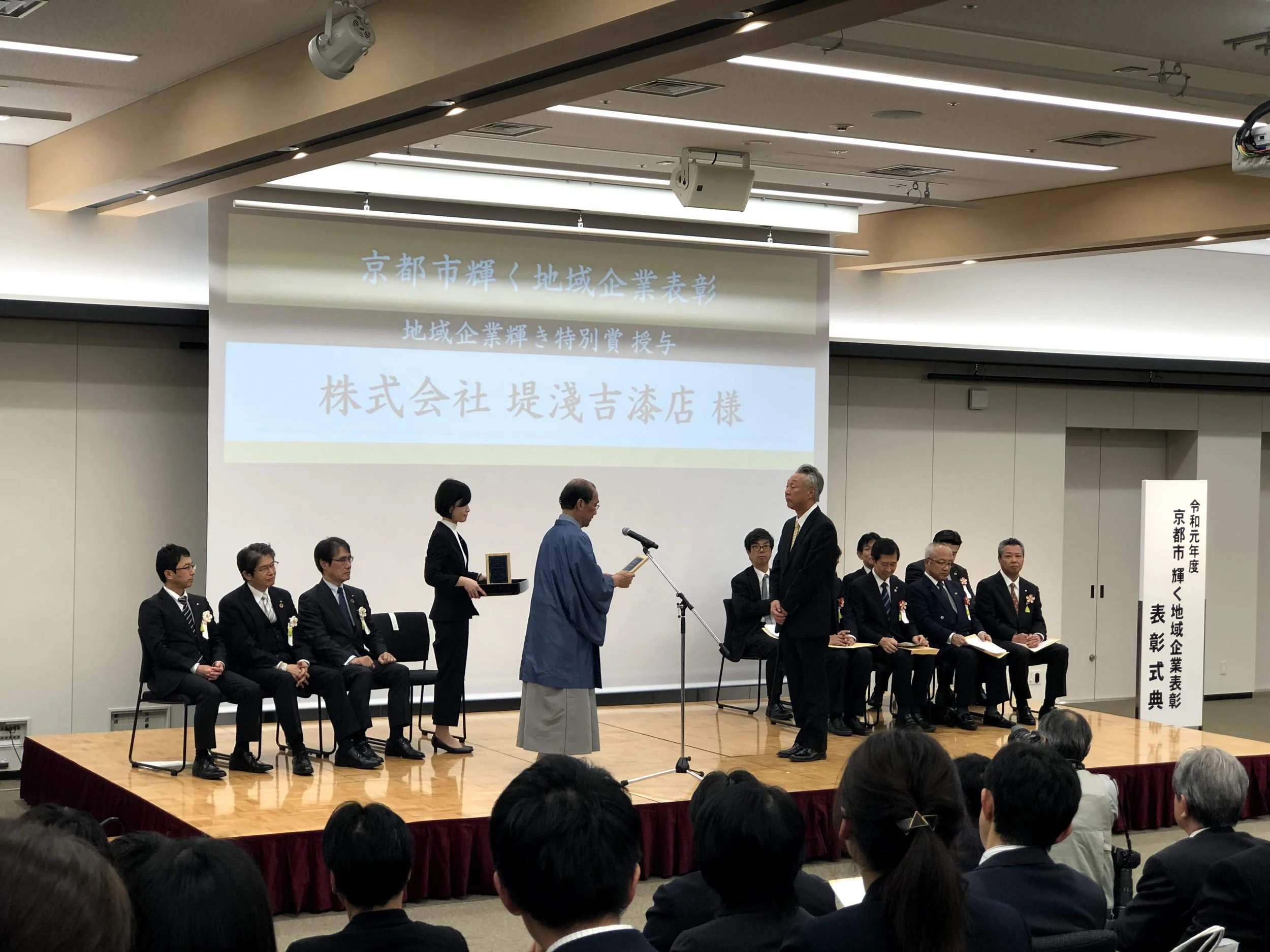 このたび(株)堤淺吉漆店は、京都市 輝く地域企業表彰にて、「地域企業輝き賞」および、「地域企業輝き特別賞」を受賞しましたのでお知らせします。