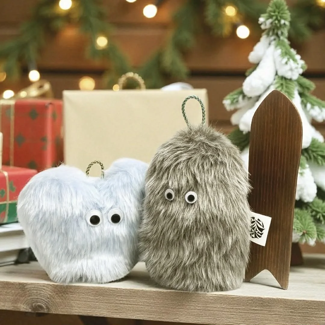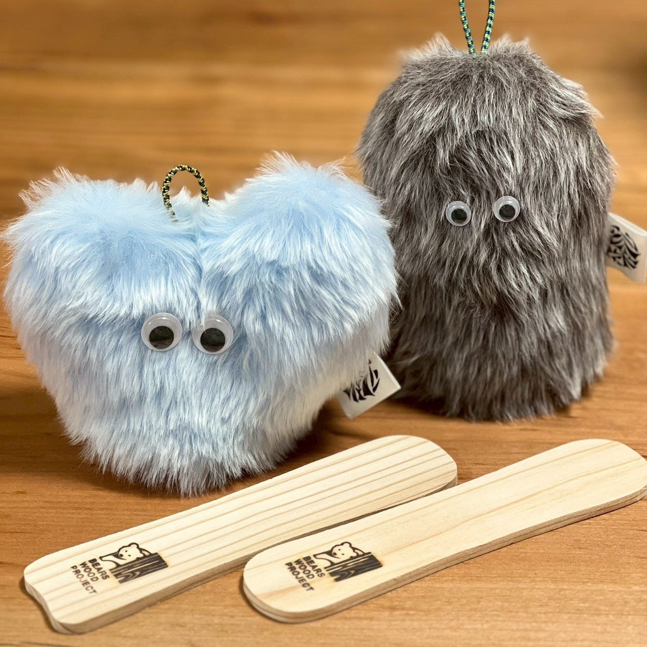 2体にはそれぞれ、ベアーズウッド製スノーボードが付属しています。ストラップ付きなのでカラビナなどにつければ、車内やショップ内でも吊り下げ可能。スノーシーズンには一緒にスキー場へ連れていくことも。クリスマスにはツリーの飾り付けに、正月飾りや鏡餅の隣でも可愛く微笑みます。夏には、サーフボード(制作予定)にチェンジして海にもGO。