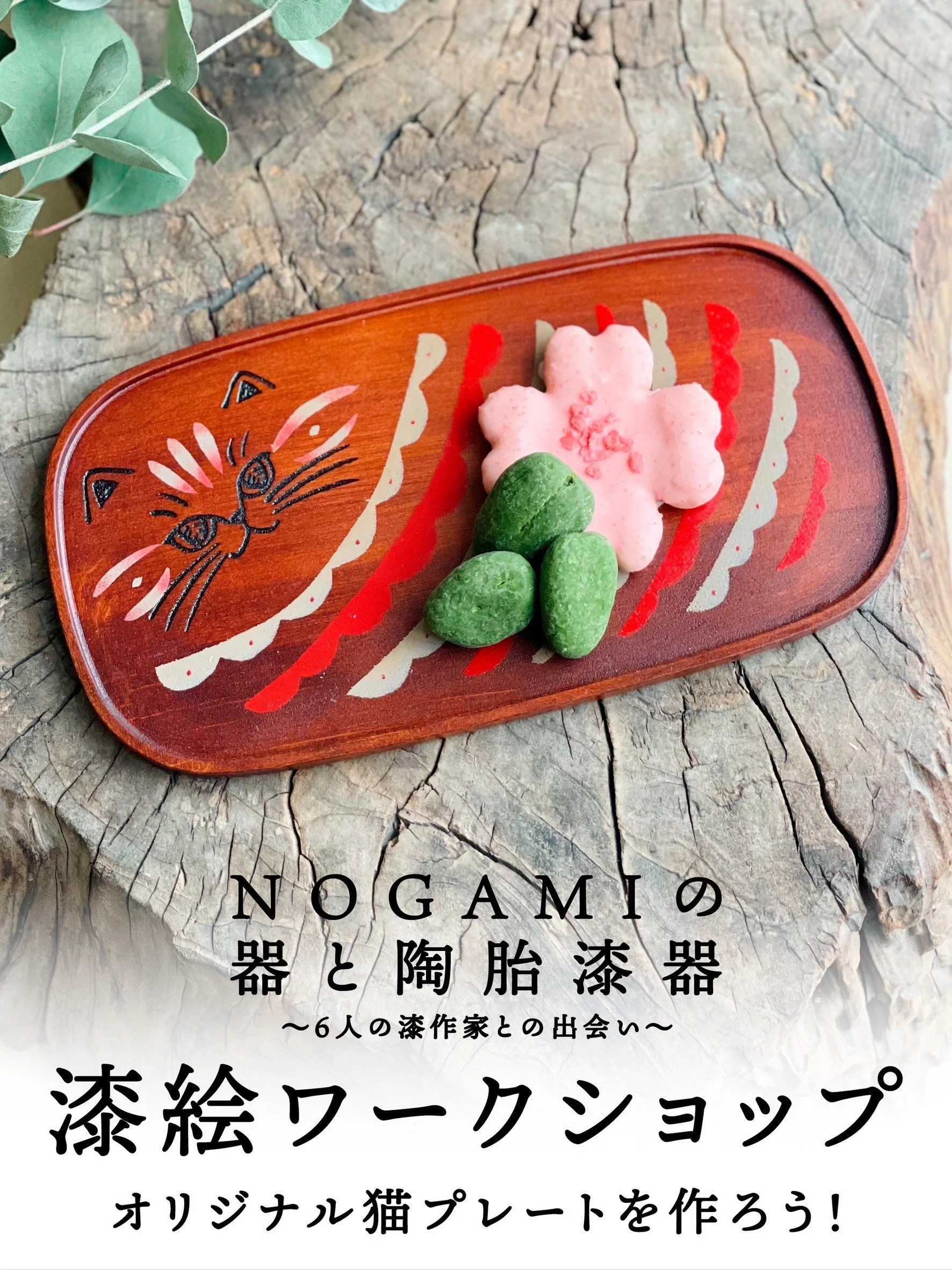 「漆絵ワークショップ」オリジナル漆猫プレートを作ろう!ーNOGAMIの器と陶胎漆器ー